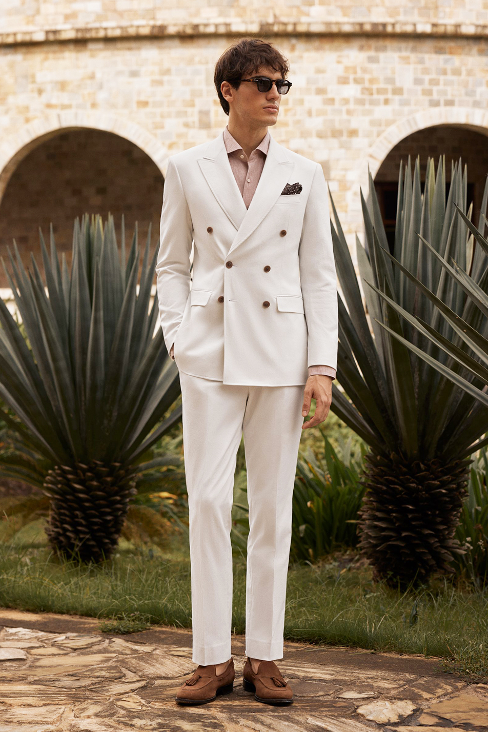 Crisp White Double Breasted Suit for Travel and Statement Wear