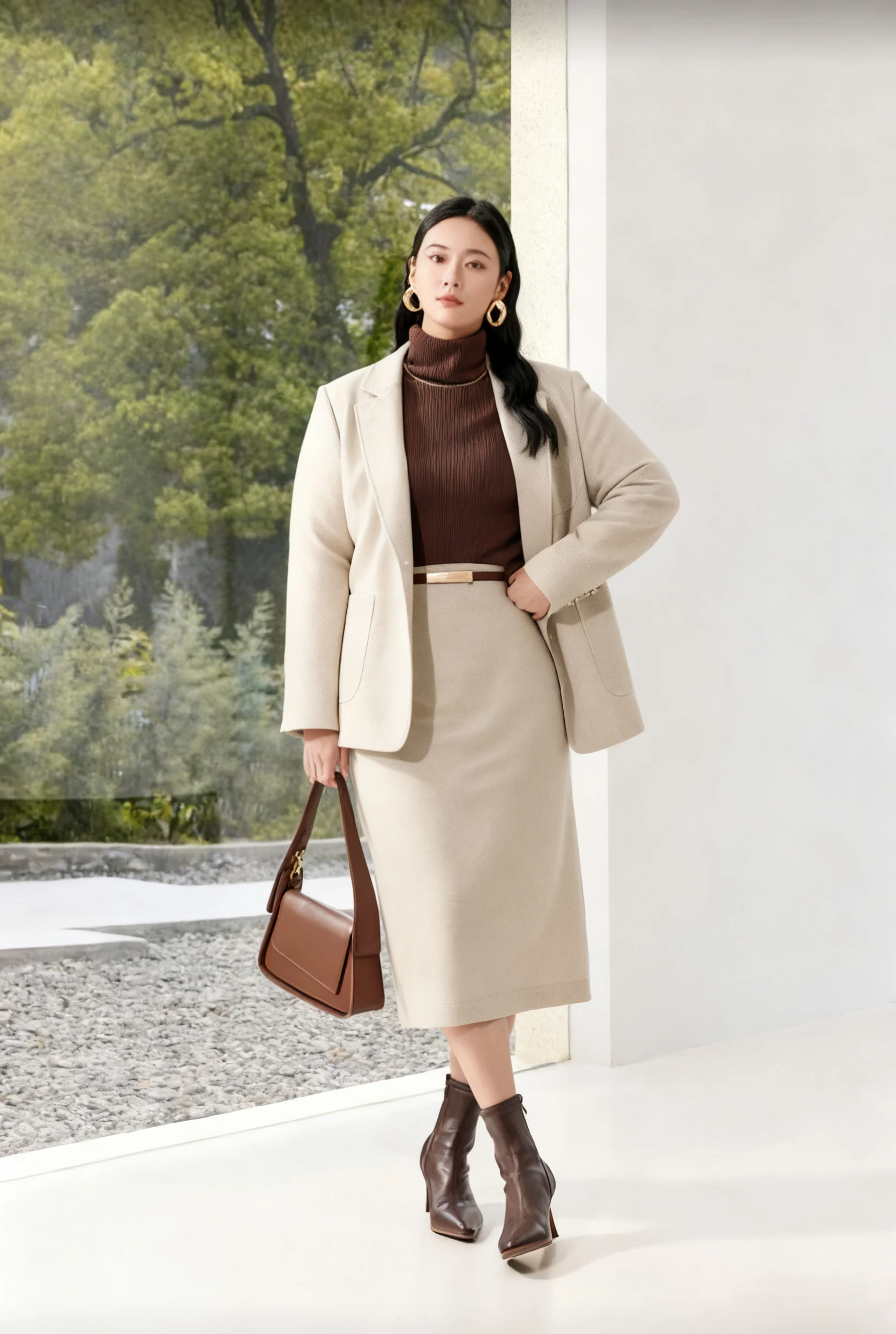 Styling Tips: For those with a fuller upper body, opt for V-neck or open-front outerwear styles to visually lengthen your neckline. If your lower body is wider, try high-waist straight or wide-leg pants to elongate your silhouette.